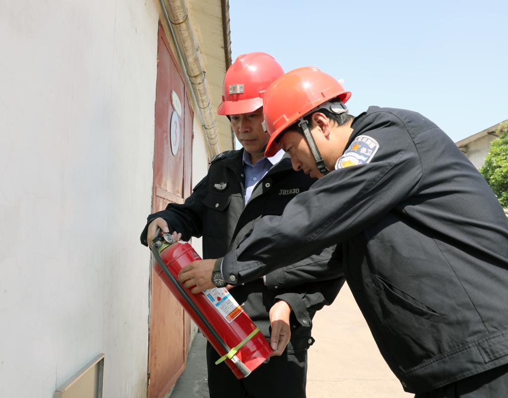 物業公司職工程永、陳燕飛檢查消防設施。“節日期間的消防安全尤為重要,越是放假了,我們越是要加大巡查力度,堅決杜絕消防隱患。”