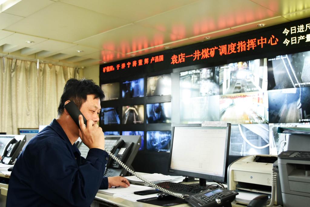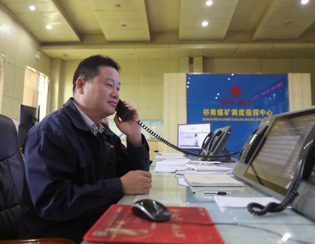 調度員余勇敢正在接聽井下生產電話。“要嚴格落實礦主要領導的要求,淡化節日氛圍,抓好安全生產,我們是礦安全生產的中樞,更是不能有絲毫大意。”