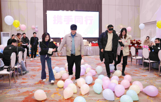 參與此次活動的20名單身男青年來自工程處、工程建設(shè)公司、臨渙礦等單位近年來新入職高校畢業(yè)生,18名單身女青年來自淮北市教育、金融、醫(yī)療系統(tǒng)單位。活動設(shè)置了“穿越呼啦圈”“搶紙杯”“攜手同行”“踩氣球”“報紙拔河”等年輕人喜聞樂見的互動小游戲,以小組為單位增添競技性,讓每個人的參與熱情持續(xù)高漲。在現(xiàn)場主持人的引導下,游戲“熱身”產(chǎn)生了很好的效果,男女青年從陌生到熟絡(luò),迅速打成一片,紛紛敞開心扉,大膽展示自己、表達想法,整個活動氛圍輕松愉悅,充滿了歡聲笑語。