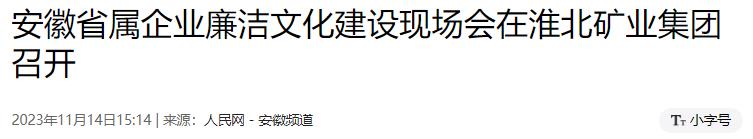 11月14日,安徽省屬企業(yè)廉潔文化建設現(xiàn)場會在淮北礦業(yè)集團召開。會議通過觀摩學習、經(jīng)驗交流等方式,集中展示省屬企業(yè)廉潔文化建設和清廉國企建設的工作成效,明確下一步工作目標和方向,推動省屬企業(yè)廉潔文化建設走深走實,不斷優(yōu)化凈化國有企業(yè)政治生態(tài),為國資國企高質(zhì)量發(fā)展提供堅強保障。