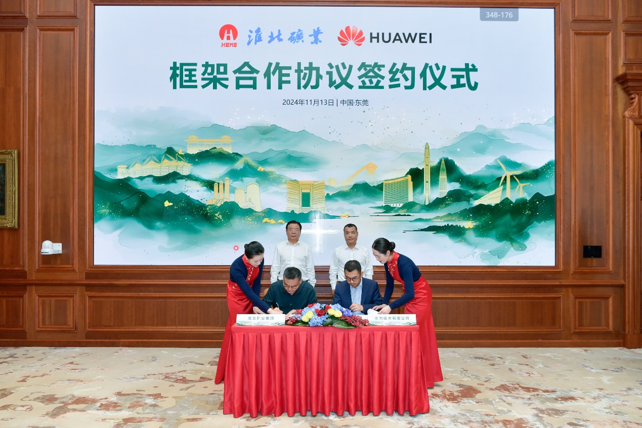 2024年11月13日,淮北礦業(yè)集團(tuán)與華為技術(shù)有限公司在廣東東莞簽署框架合作協(xié)議。淮北礦業(yè)集團(tuán)黨委副書記、總經(jīng)理孫方,華為油氣礦山軍團(tuán)生態(tài)合作總裁楊文池出席簽約儀式。淮北礦業(yè)副總經(jīng)理聶政,華為安徽政企副總經(jīng)理張鵬作為雙方簽約代表完成協(xié)議簽署。