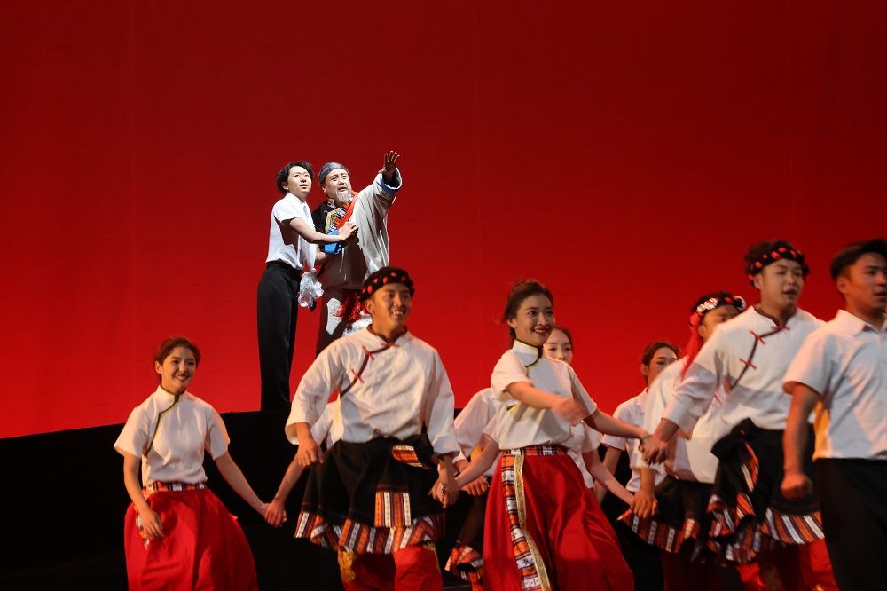 演出以援藏故事為創(chuàng)作題材,分為初心、使命與擔當、幸福新時代等篇章,通過情景再現(xiàn)的方式,將音樂、舞蹈、話劇、舞臺美術等多種藝術元素巧妙地融為一體,不僅有雅礱果諧、打阿嘎、踢踏舞等眾多藏族舞蹈元素的體現(xiàn),也有獨唱、情景劇、詩朗誦等多種藝術元素的表演,表達了對黨的感恩熱愛、對援藏干部的誠摯敬意、對援藏成就的由衷自豪,贏得觀眾陣陣掌聲。