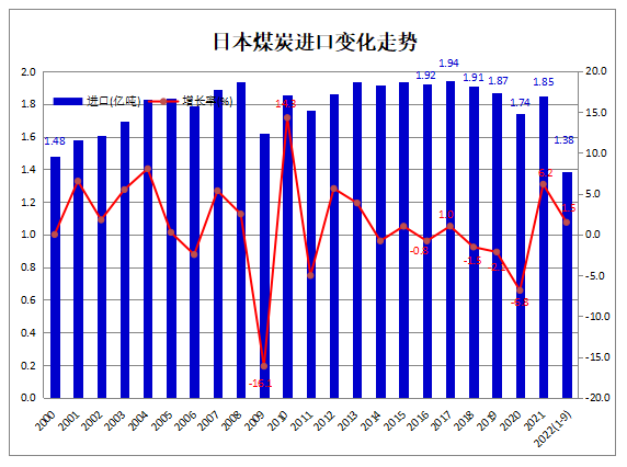 據(jù)日本財務(wù)省(Ministry of Finance Japan)發(fā)布的海關(guān)商品進(jìn)出口貿(mào)易統(tǒng)計數(shù)據(jù)顯示,2022年1-8月,日本煤炭進(jìn)口量累計為1.38億噸,比上年同期增加203.0萬噸,同比增長1.5%。其中,9月份煤炭進(jìn)口1491.9萬噸,同比減少8.9%,環(huán)比下降14.0%。