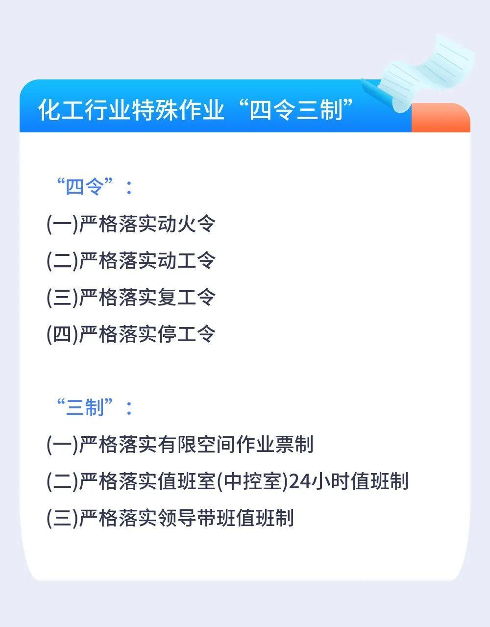 ? 人員到位:復工復產前要確認主要負責人、分管負責人、安全生產管理人員、特種作業人員 到崗到位;落實班組、車間、廠級教育培訓,確保“不培訓不上崗、不合格不上崗”。